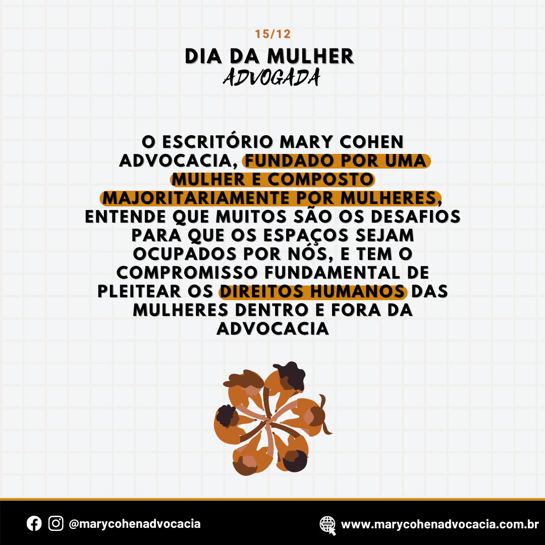 O Escritório Mary Cohen Advocacia, fundado por uma mulher e composto majoritariamente por mulheres, entende que muitos são os desafios para que os espaços sejam ocupados por nós, e tem o compromisso fundamental de pleitear os direitos humanos das mulheres dentro e fora da advocacia.