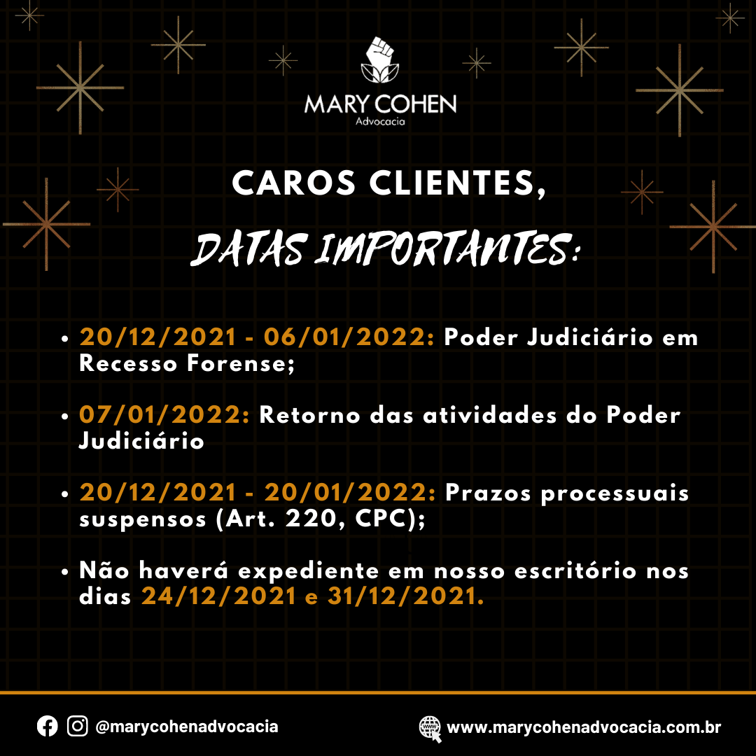 Desejamos a todos os clientes boas festas e um ano novo repleto de realizações! #marycohenadvocacia
