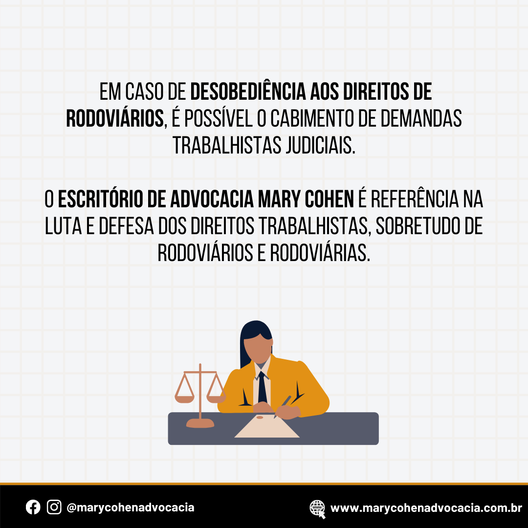 Em caso de desobediência aos direitos de rodoviários, é possível o cabimento de demandas trabalhistas judiciais.