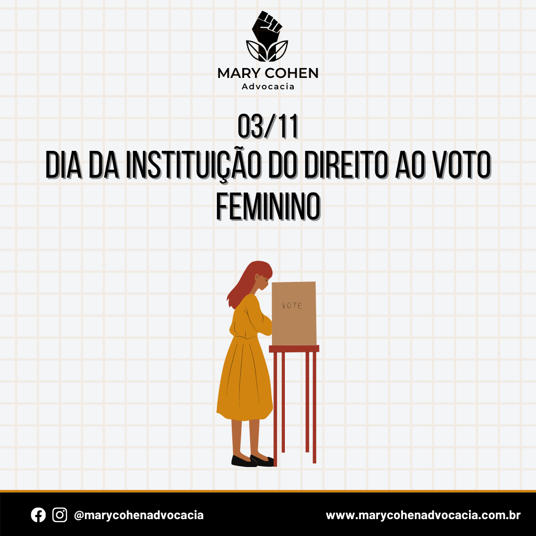 Isso mesmo! O voto feminino foi instituído no Brasil em 3 de novembro de 1930. Em 1932 foi aprovado no Código Eleitoral e apenas em 1934 foi inserido na Constituição Brasileira.
