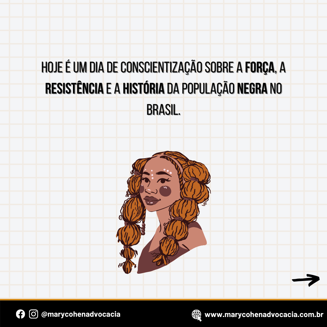 Hoje é um dia de conscientização sobre a força, a resistência e a história da população negra no Brasil. A data surge como reapropriação da memória histórica da luta negra contra o racismo e a escravidão e em defesa da liberdade em contraponto à narrativa histórica oficial.